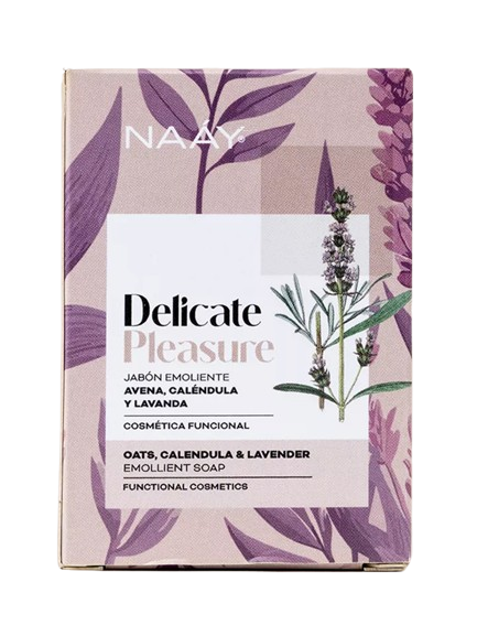 Mima tu piel con DELICATE PLEASURE. Tableta de jabón hecha con copos de avena, flores de caléndula, lavanda y riquísimos aceites vegetales. La limpieza nunca fue tan suave. Propiedades calmantes, relajantes y emolientes. Apto para todo tipo de pieles. Ideal para pieles sensibles.Más de 20 años transformando pieles y hábitos